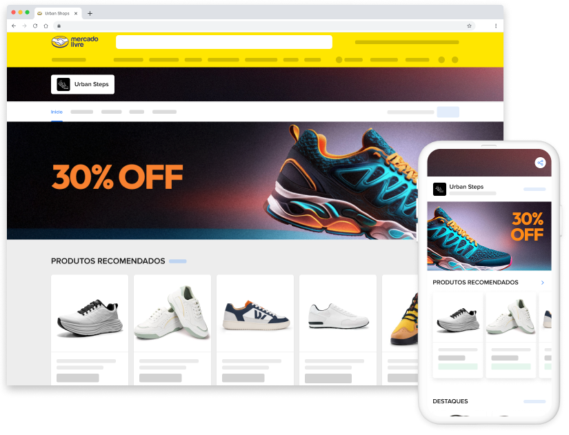 Levar tráfego para sua página será mais fácil do que no seu Shop! Em diferentes lugares do Mercado Livre, o acesso à sua página estará visível para que você aproveite as visitas de milhões de pessoas.